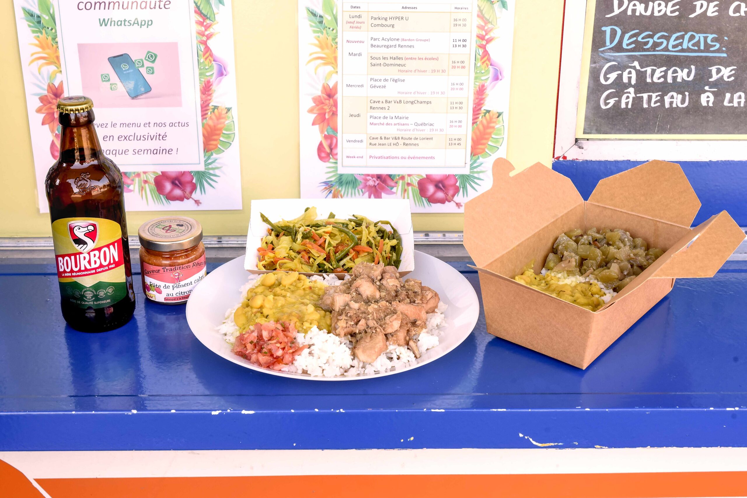 Leur aventure a pris une nouvelle dimension en mars 2018, avec l’ouverture de leur Camion Bar, qui propose des plats traditionnels réunionnais, mijotés chaque jour. Attachés à la lutte contre le gaspillage alimentaire, Marie-Pierre et Lilian préparent des plats faits maison, à base de produits frais, sans surgelés ni compromis sur la qualité.